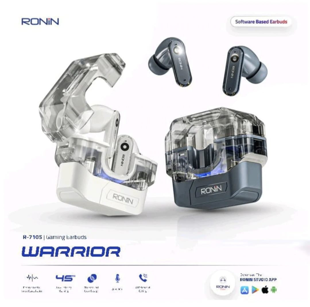 • The Ronin R-7105 Warrior Gaming Earbuds redefine wireless audio with ultra-low latency, AI-enhanced calls, and a futuristic transparent design. Built for gamers and music enthusiasts, these earbuds deliver immersive stereo sound, smart touch controls, and extended battery life — all supported by the Ronin Studio App for personalized performance.